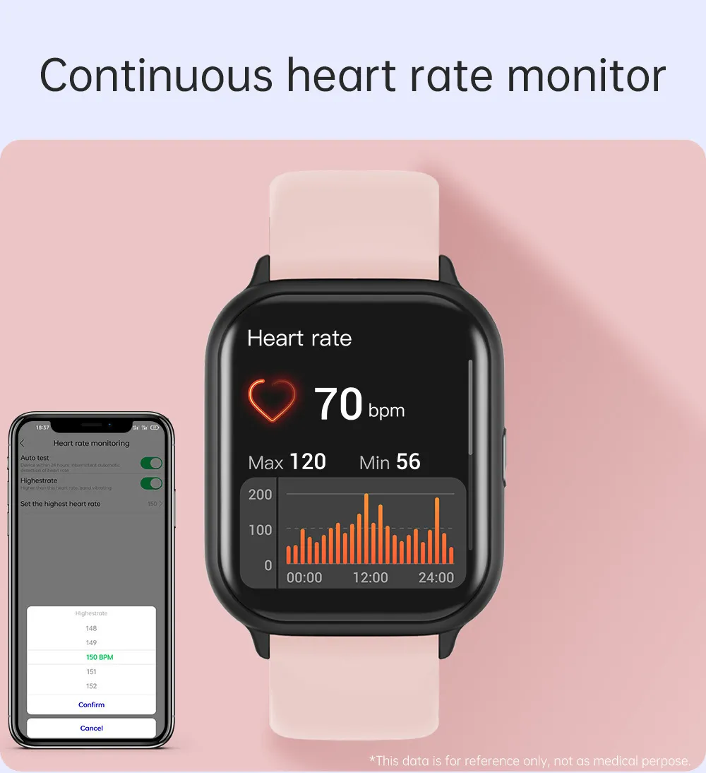 Equipped with multiple sports modes, this smartwatch allows you to track running, cycling, walking, and other workouts. The Bluetooth connectivity ensures seamless synchronization with your smartphone, enabling easy access to your fitness data and notifications on the go.