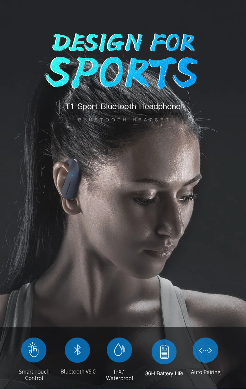 GGMM wireless sports headphones, Bluetooth 5.0 IPX7 wireless headphones, wireless earphones with micro charging case 600 mAh for 36 H,