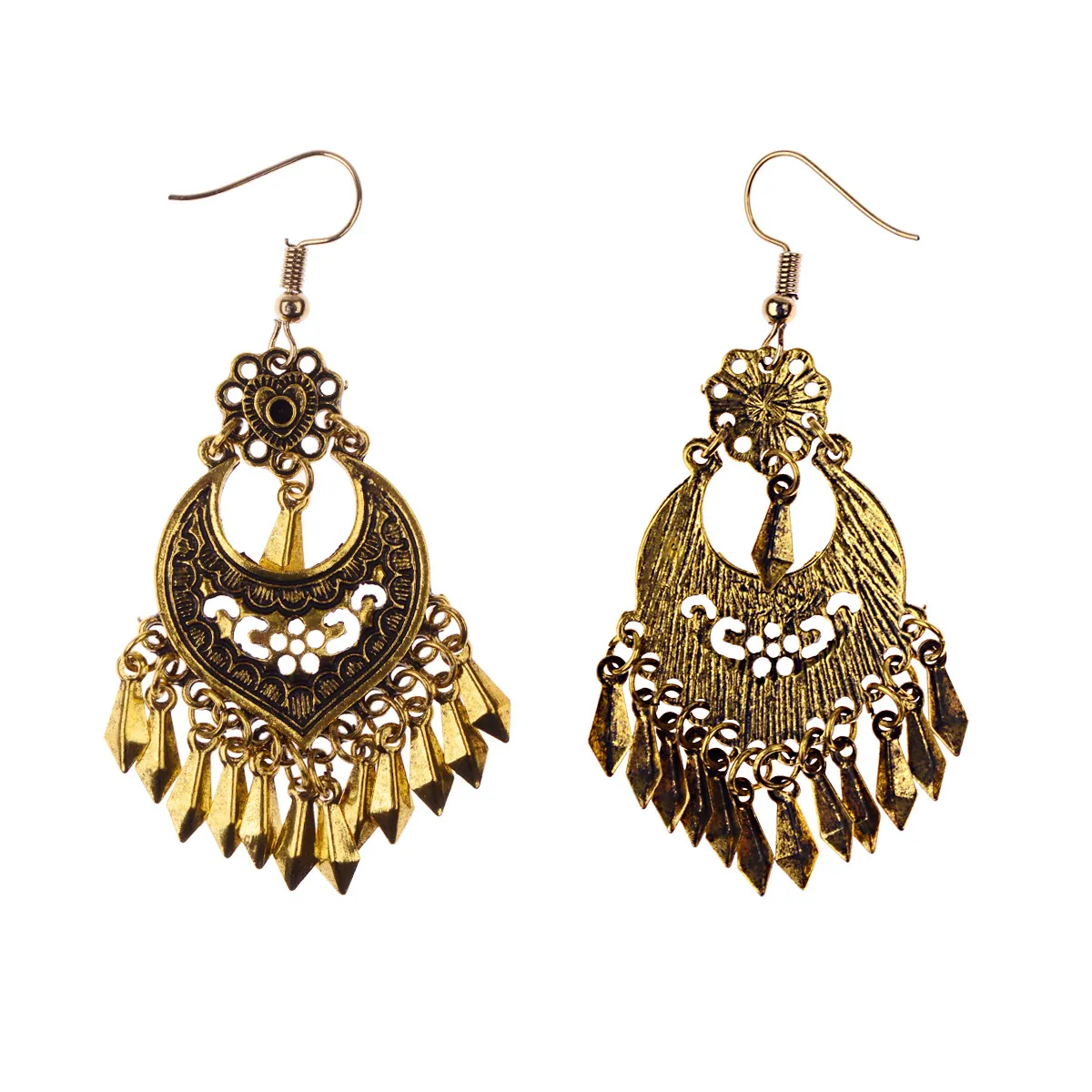Bohemian Retro Royal Court Style Nepal Exotic Ethnic Characteristics Distressed Ancient Gold Earrings