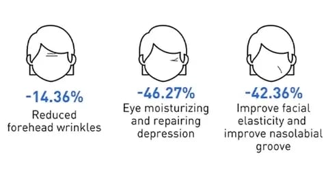 - Fades forehead creases, frown lines, crow's feet, etc.