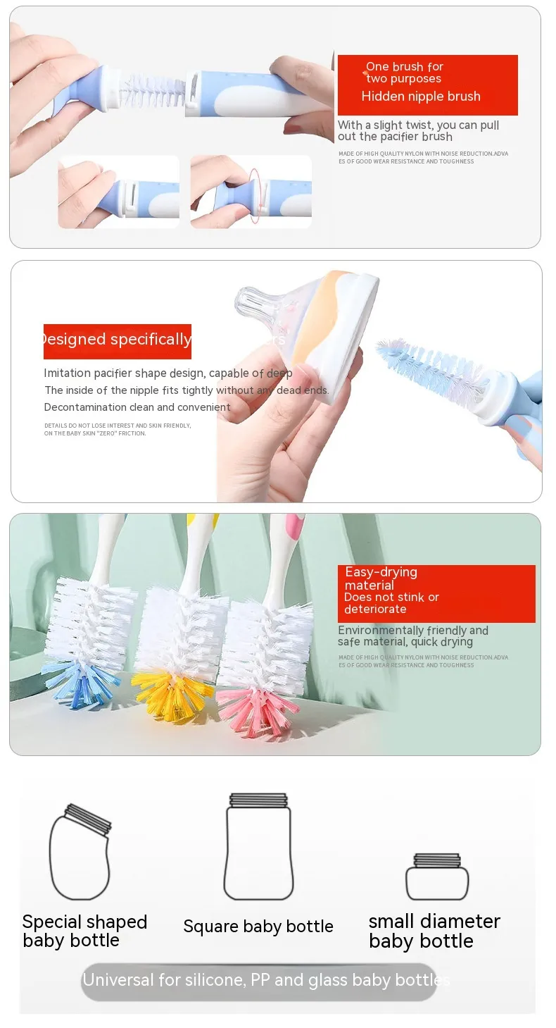 Multi-Purpose Design: Suitable for cleaning baby bottles, water bottles, thermos, glass jars, and more. The brush is