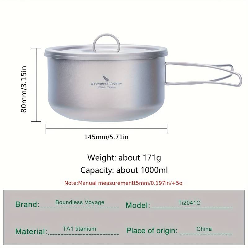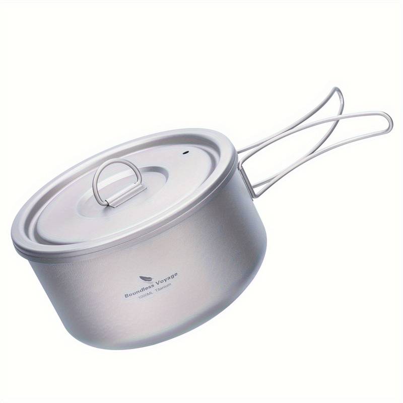 Boundless Voyage 1000ml/1L Titanium Camping Pot with Lid Lightweight, Durable Outdoor Cooking Companion for Adventurers