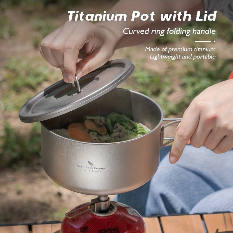 Boundless Voyage 1000ml/1L Titanium Camping Pot with Lid – Lightweight, Durable Outdoor Cooking Companion for Adventurers