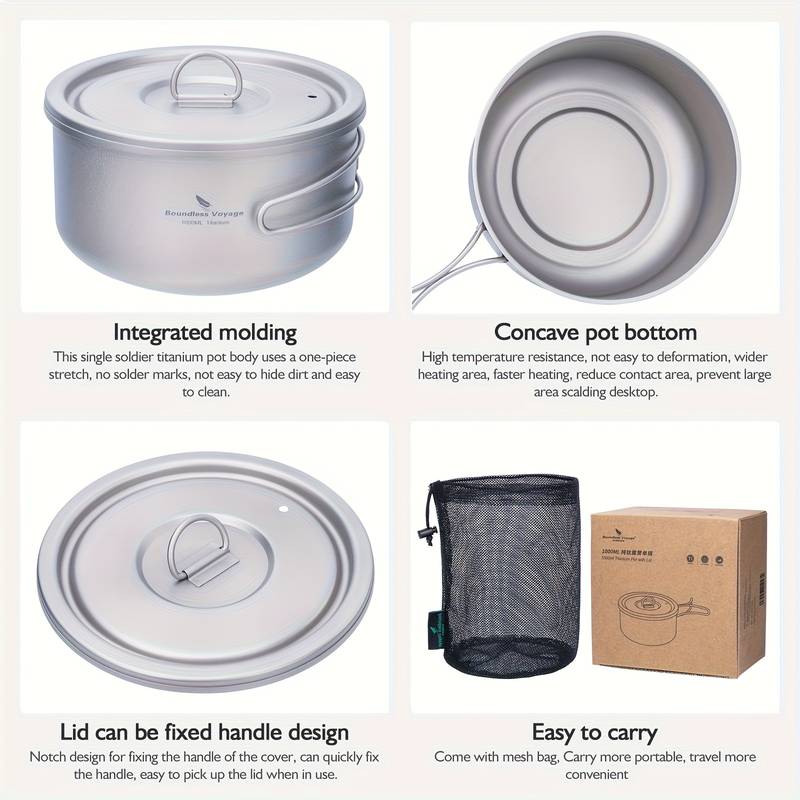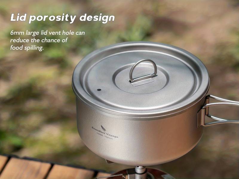 The Boundless Voyage 1000ml/1L Titanium Camping Pot is the perfect cooking solution for outdoor adventurers who value
