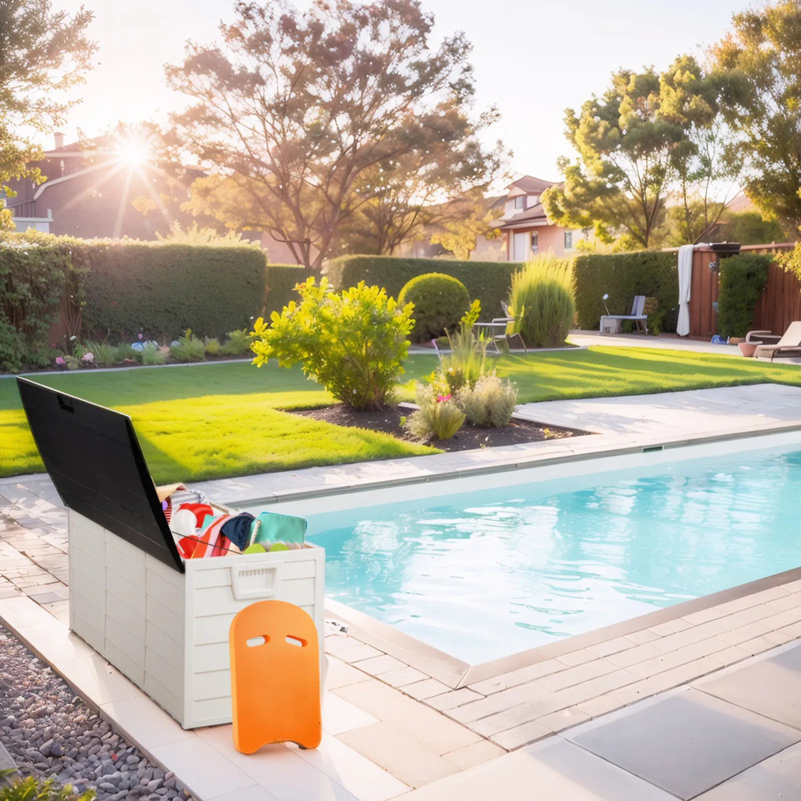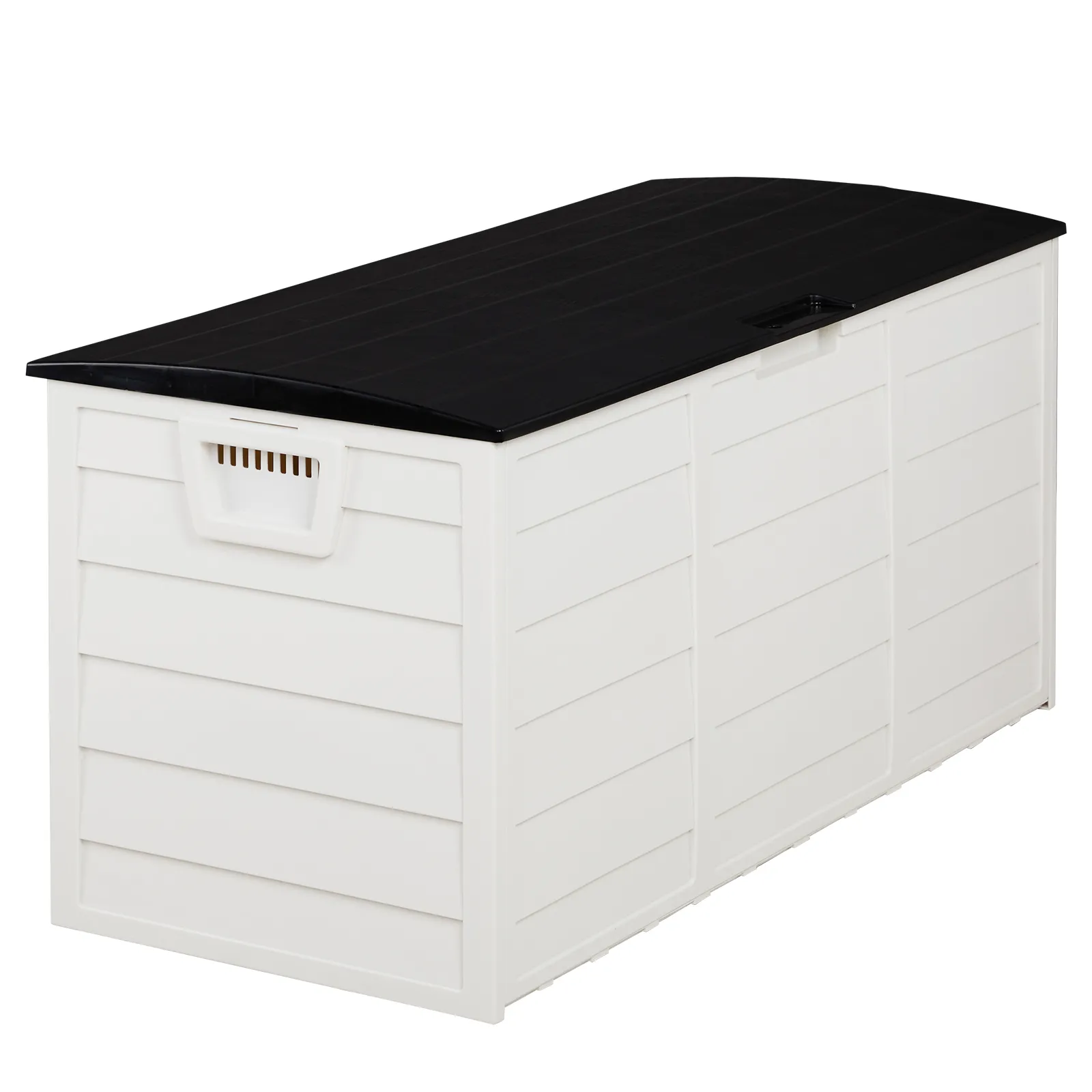 1. 280L Garden Storage Box With Wheels - Formed in hard wearing and durable plastic which is weatherproof, and UV resistant, with a slatted