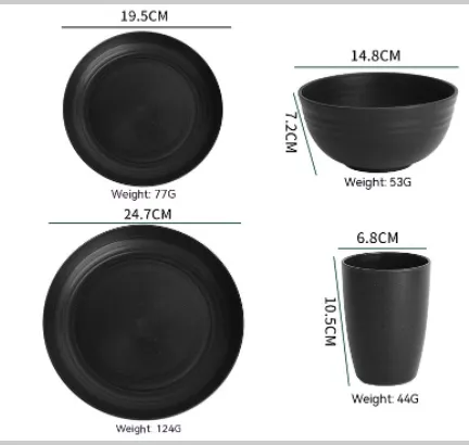 Boxed Bowl Dish Plate Cup Suit Black Wheat Dining Bowl and Plate Dish Cup 16-Piece Set: Sustainable Elegance for Every Meal