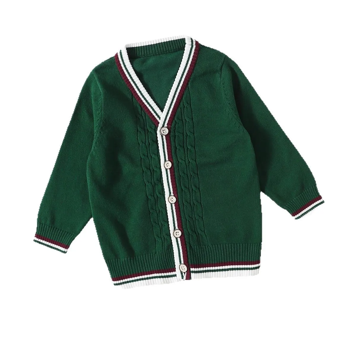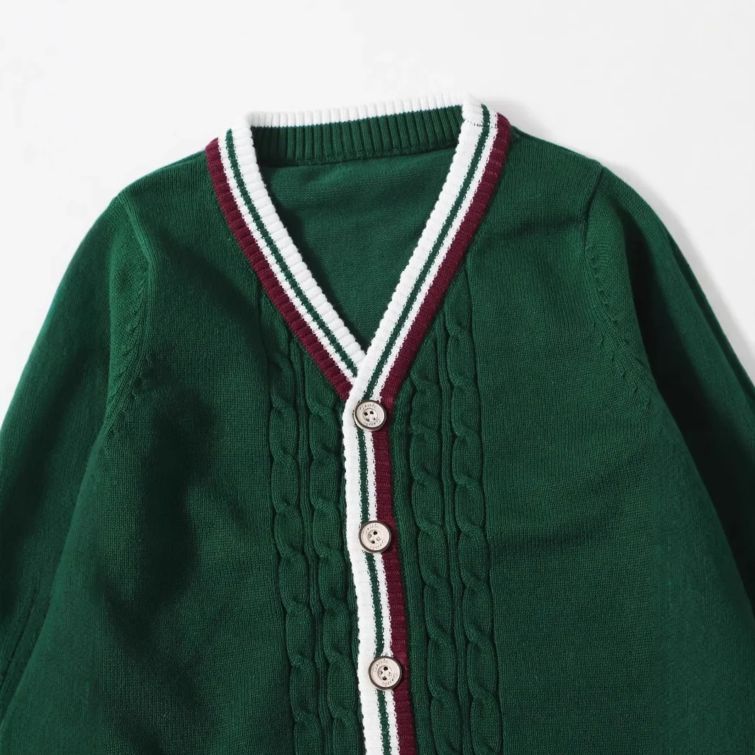 The cardigan comes with a button-down front for easy wear and removal, ensuring that your child stays comfortable throughout the day. It’s also perfect for layering over shirts or light jackets during the transitional seasons. Available in a range of sizes to fit young boys, this cardigan is a stylish yet practical piece that your child will love wearing all season long.
