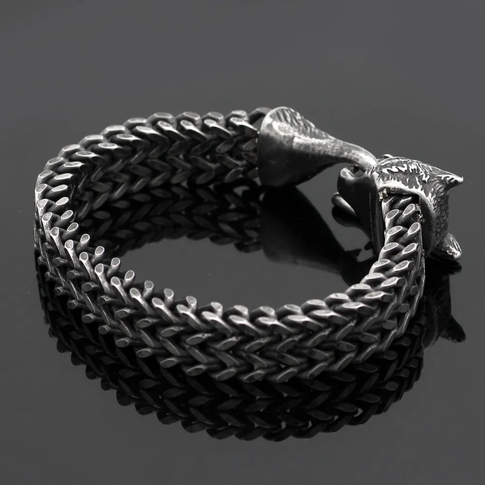Bracelet Men Stainless Steel Vintage Black Wolf Head Cuban Chain Hand Wristband: Bold and Masculine Fashion Statement