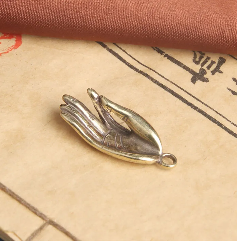 Brass Old Zen Heart Buddha Hand Creative Keychain Pendant