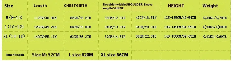 Size: M(8-10 years old),L(10-12 years old),XL(14-16 years old)