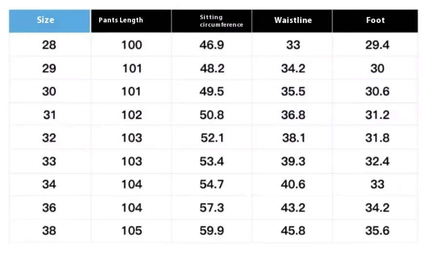 Size: 28, 29, 30, 31, 32, 33, 34, 36, 38