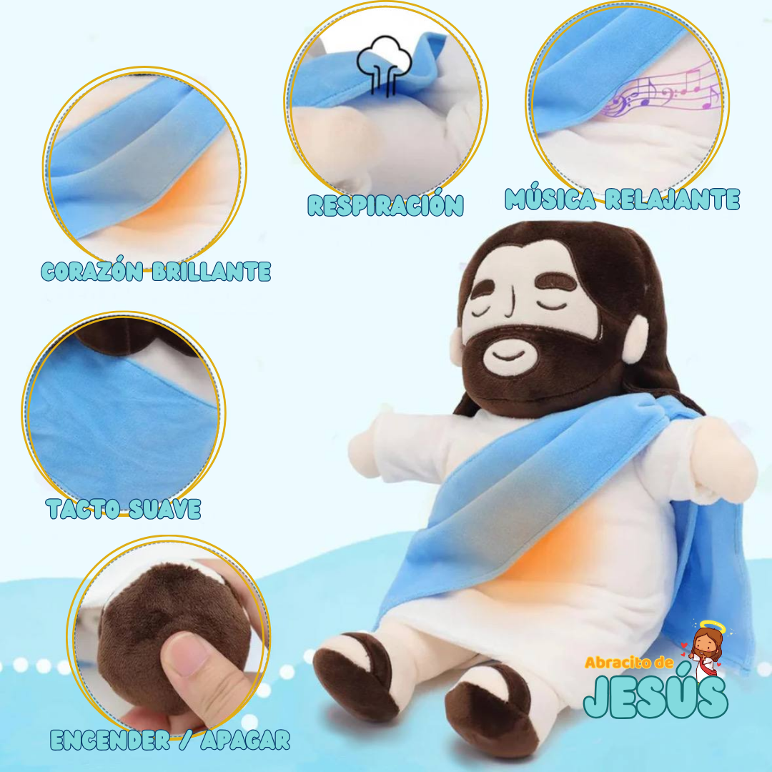 - [Cuddly Companion] Breathing Jesus plush, a 13.8inch/35cm Jesus plush toy perfect for snuggling and relaxation. This Jesus plush toy features a gentle breathing motion, simulating the calming rhythm of deep breaths for a comforting experience. Children can take Jesus plush to bed with them and the Jesus doll will watch over them while they sleeps, snuggling with them and having good dreams.