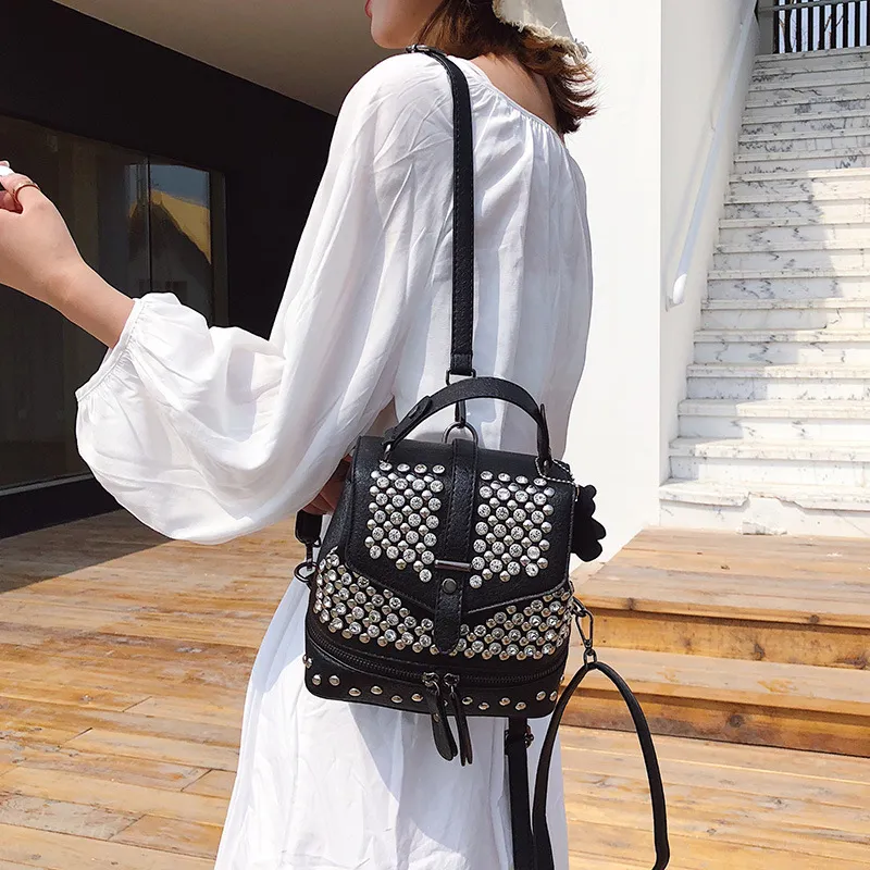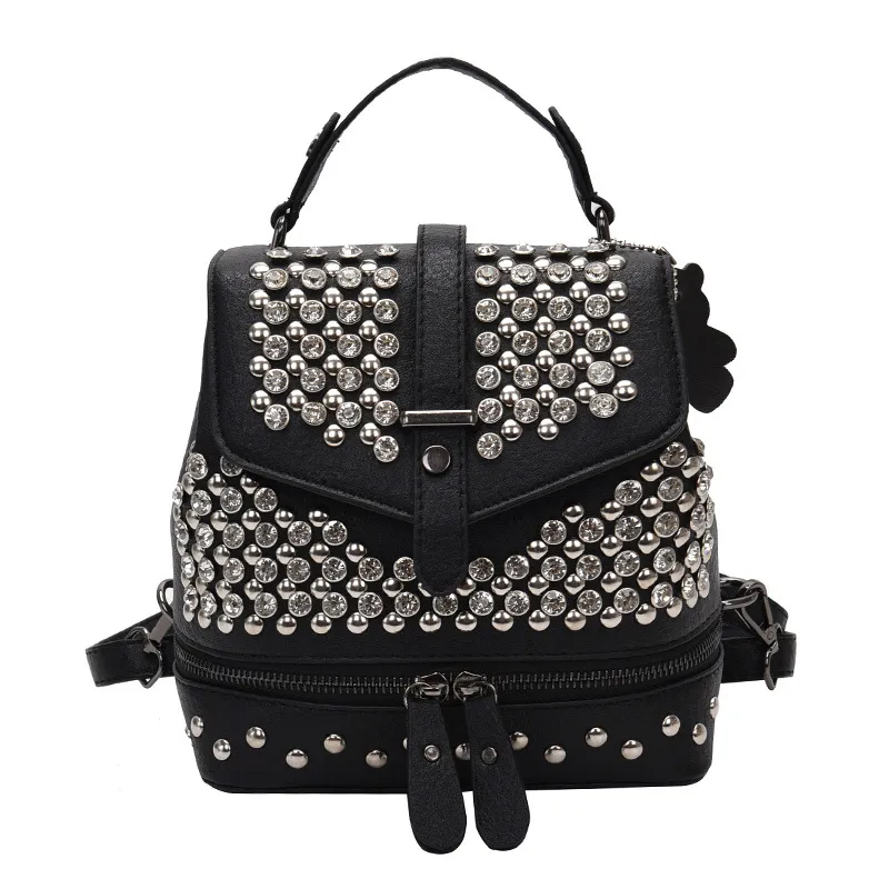 combine elegance with practicality. This trendy small backpack features dazzling diamond-like embellishments, making it perfect for casual