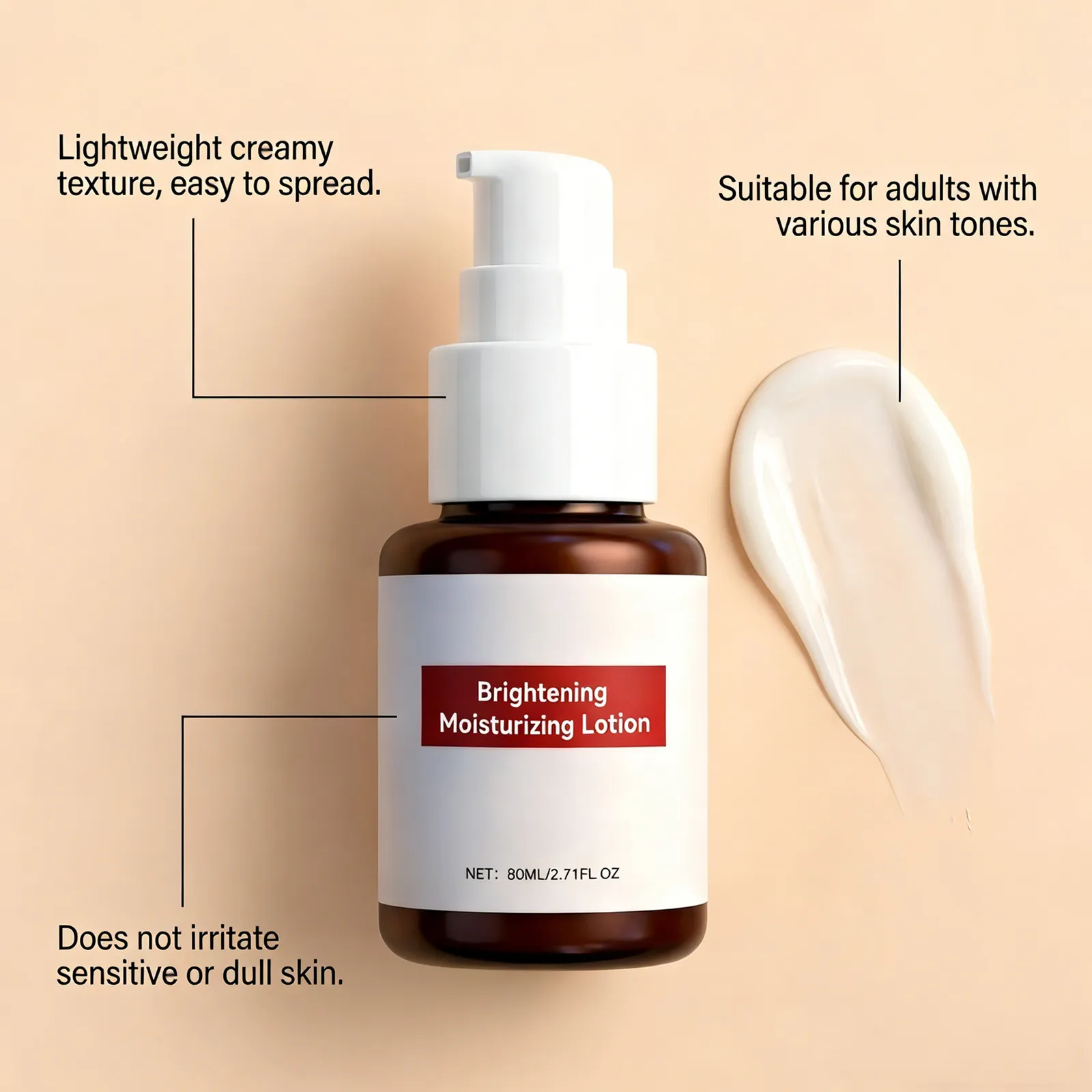 The Brightening Moisturizing Lotion is a must-have for anyone seeking to hydrate, brighten, and nourish their skin in one easy step. Packed with effective ingredients like glycerin, vitamin E, and mineral oil, it deeply moisturizes, nourishes, and protects your skin from dryness and dullness. Whether you're looking to add a healthy glow or restore moisture, this lotion is the perfect addition to your daily skincare regimen.