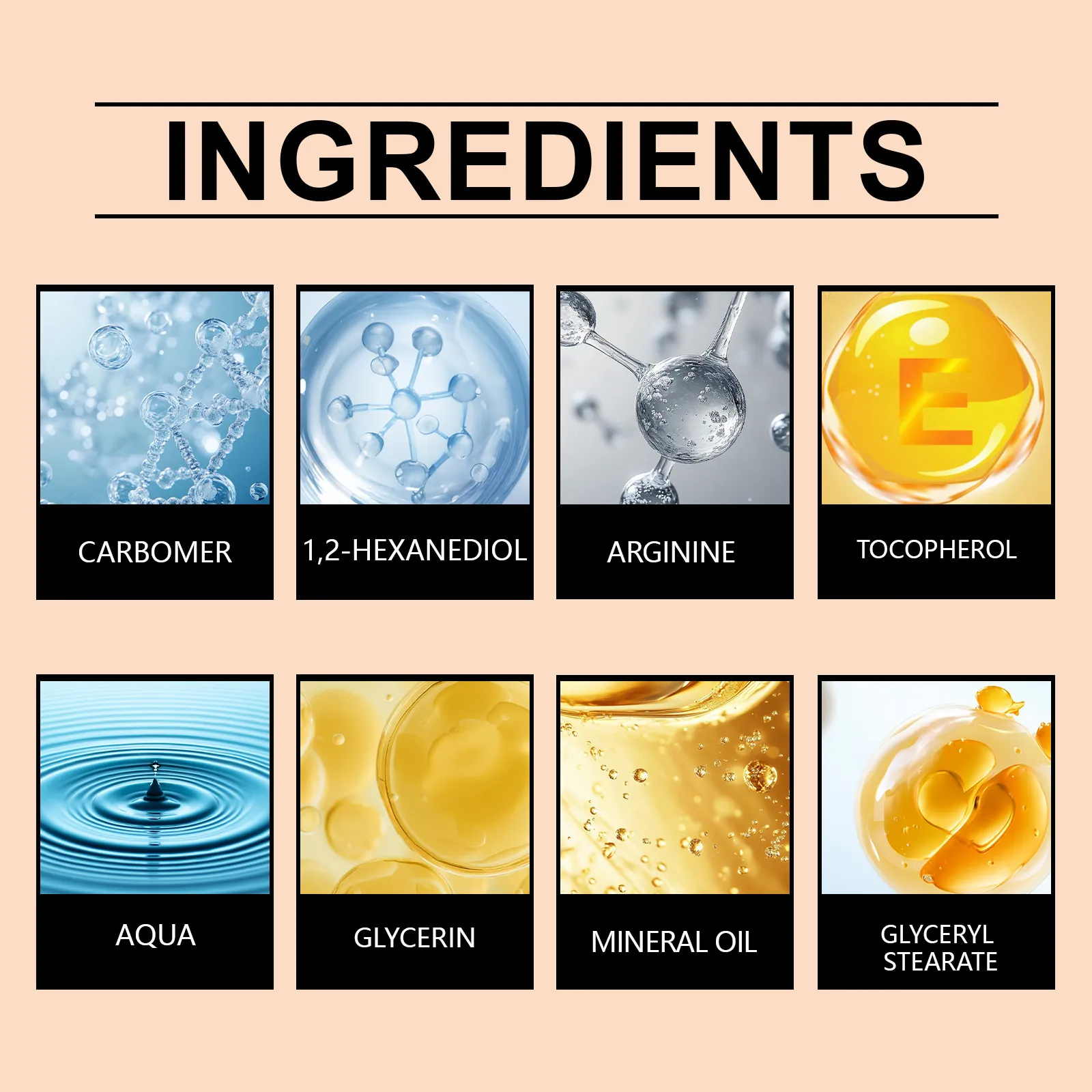 Ingredients: water, mineral oil, glycerol, glycerol stearate, 1,2- hexanediol, carbomer, arginine, tocopherol (vitamin E).