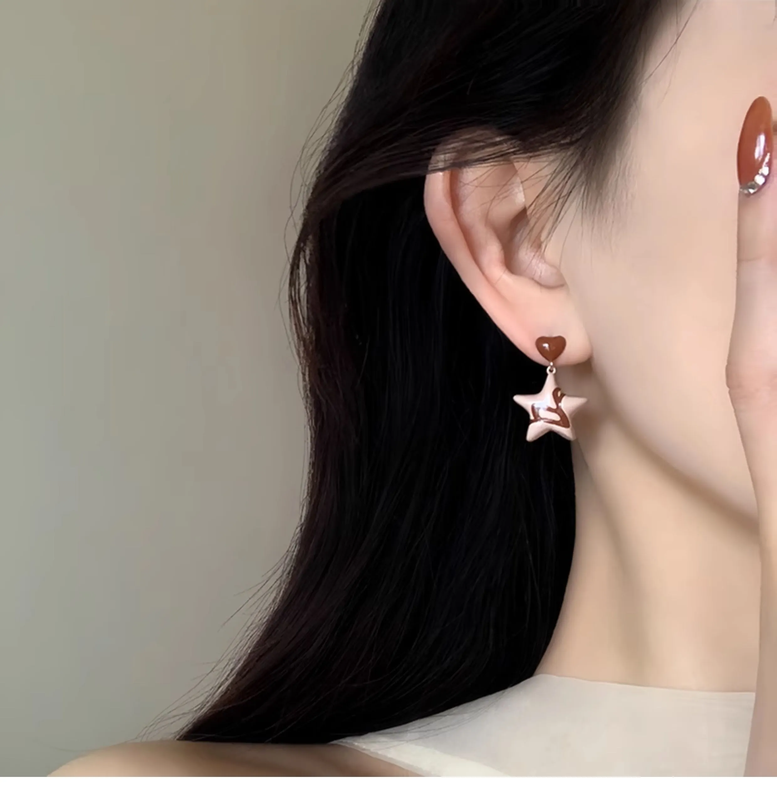 Brown Five-pointed Star Temperament Unique Earrings