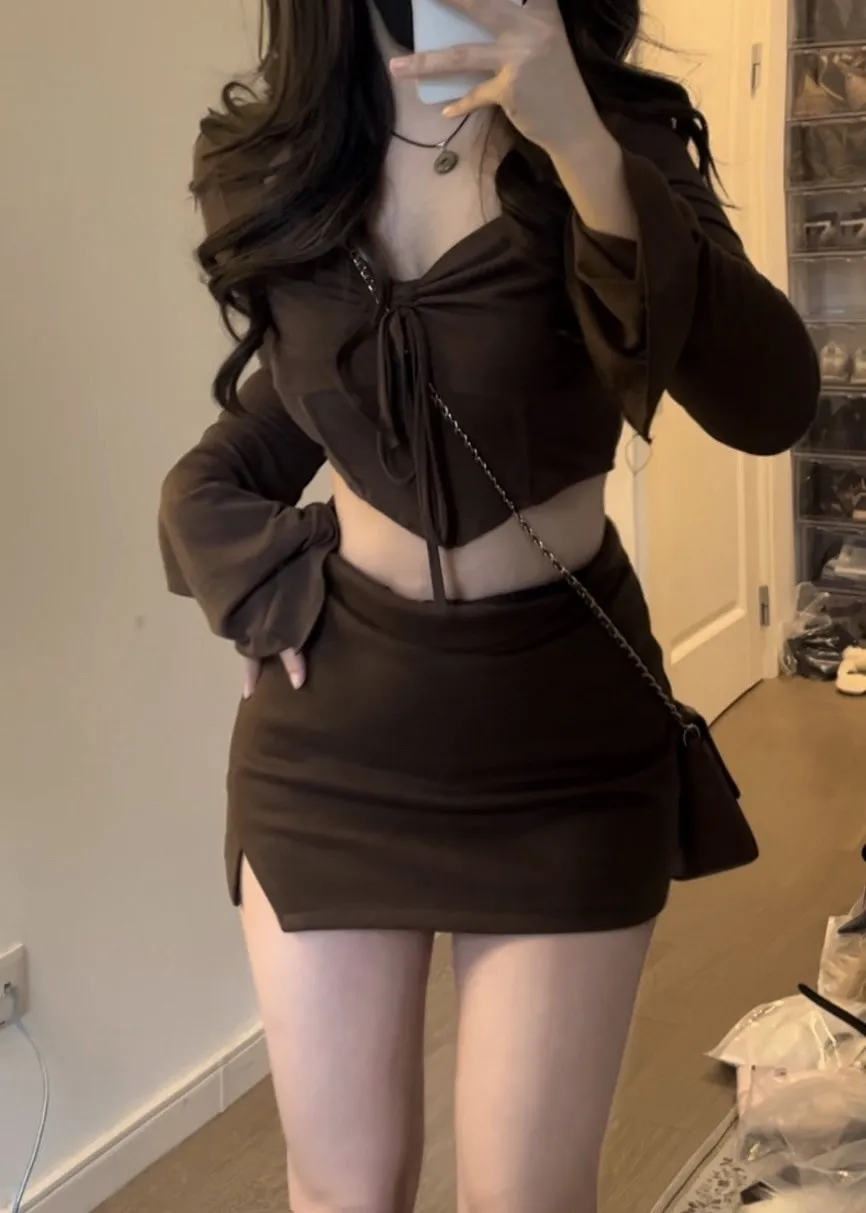 A brown long sleeve top is a versatile clothing item featuring long sleeves, a classic fit, and a stylish brown color that complements various outfits. Designed for comfort and style, it can be paired with jeans, skirts, trousers, or layered under jackets for a fashionable look. Its soft fabric ensures ease of movement, while the elegant brown hue offers a sophisticated yet casual style suitable for everyday wear.