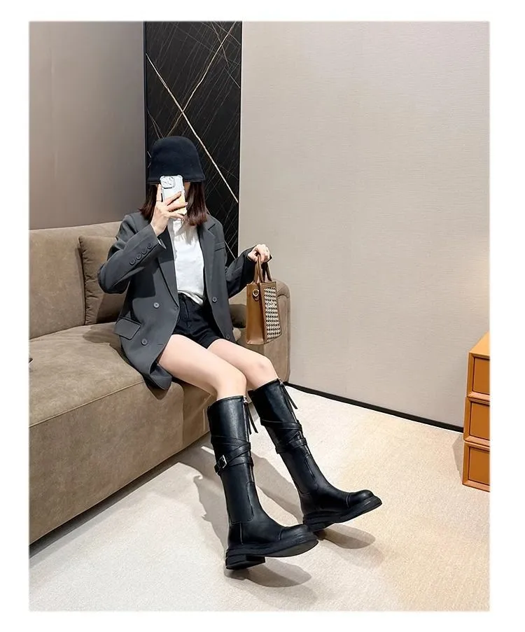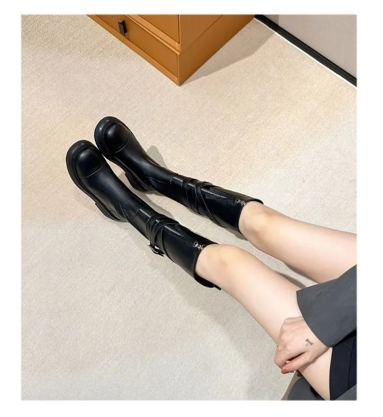 Made from high-quality faux leather (or genuine leather if specified), these boots feature a sleek tall tube shaft that elongates the legs while providing support and structure. The slim, contoured fit flatters the leg line, making them a chic choice for pairing with jeans, leggings, skirts, or dresses.