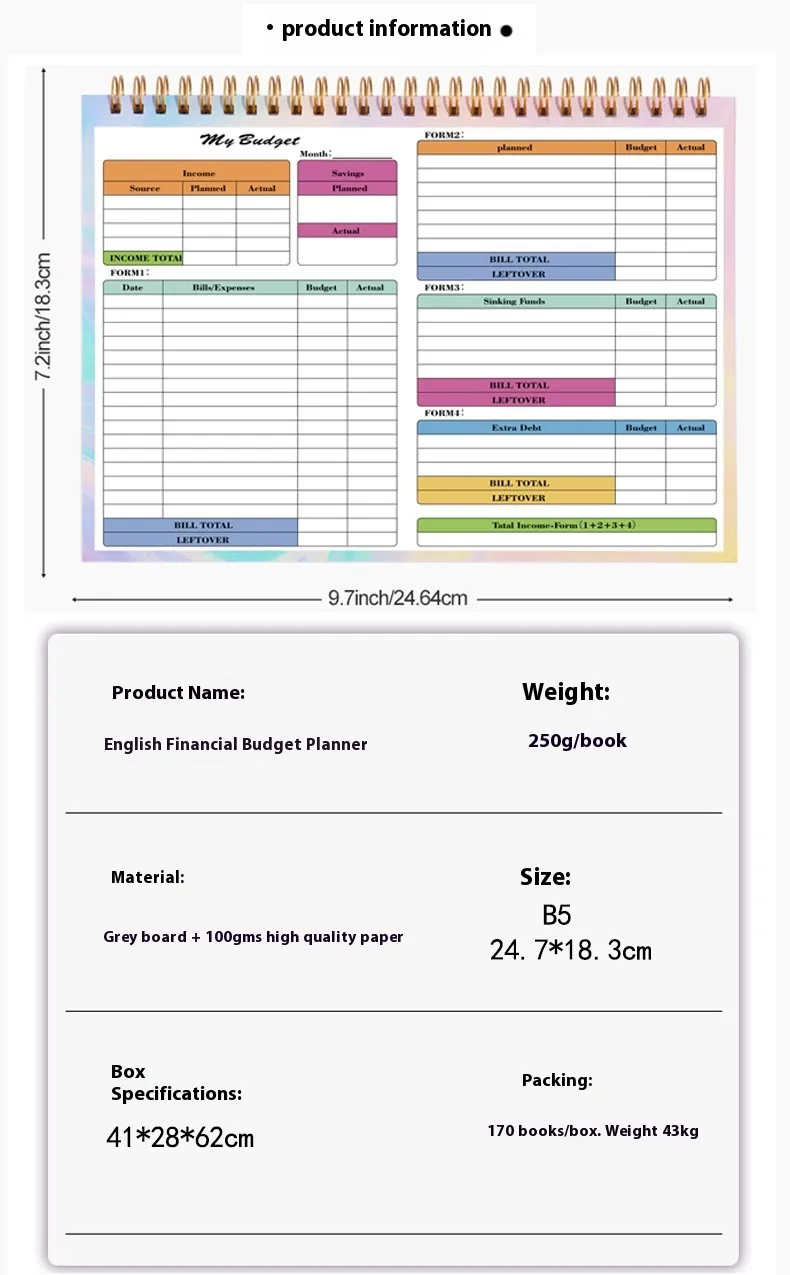The notebook comes with a simple, elegant design that fits seamlessly into any workspace. Its durable binding and cover protect the pages, making it long-lasting for daily financial tracking. Ideal for family budgeting, personal finance management, or small business record-keeping.