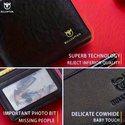 BULLCAPTAIN Custom Mens Genuine Leather Wallet Luxury Business Style with Golden-Tone Hardware and Large Capacity