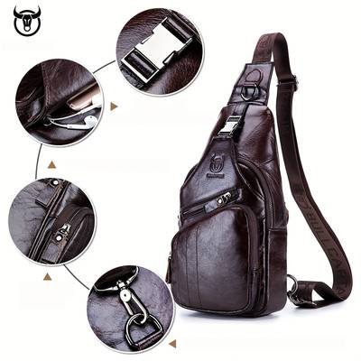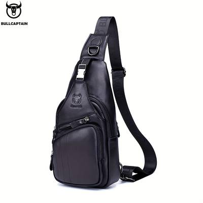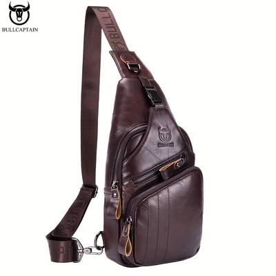 BULLCAPTAIN Mens Genuine Leather Chest Bag Durable & Hands-Free Design for Modern Adventurers