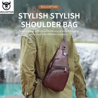 BULLCAPTAIN Men’s Genuine Leather Chest Bag – Durable & Hands-Free Design for Modern Adventurers