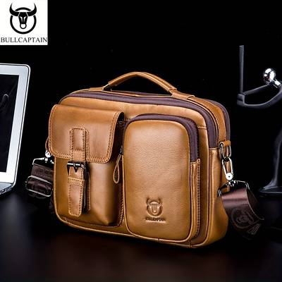 BULLCAPTAIN Men's Genuine Leather Messenger Bag – Vintage, Multi-Functional, Large-Capacity Briefcase for Travel & Outdoor