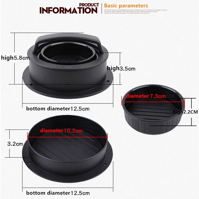 - 【3 in 1 Hamburger Press Patty Maker】The Burger press has 3 parts for different functions,the bottom mold for big patty,the middle for stuffed patty,the top for sliders and mini patty.One burger press will help you make three kinds of perfect round formed patty as same as what you buy in restaurant.