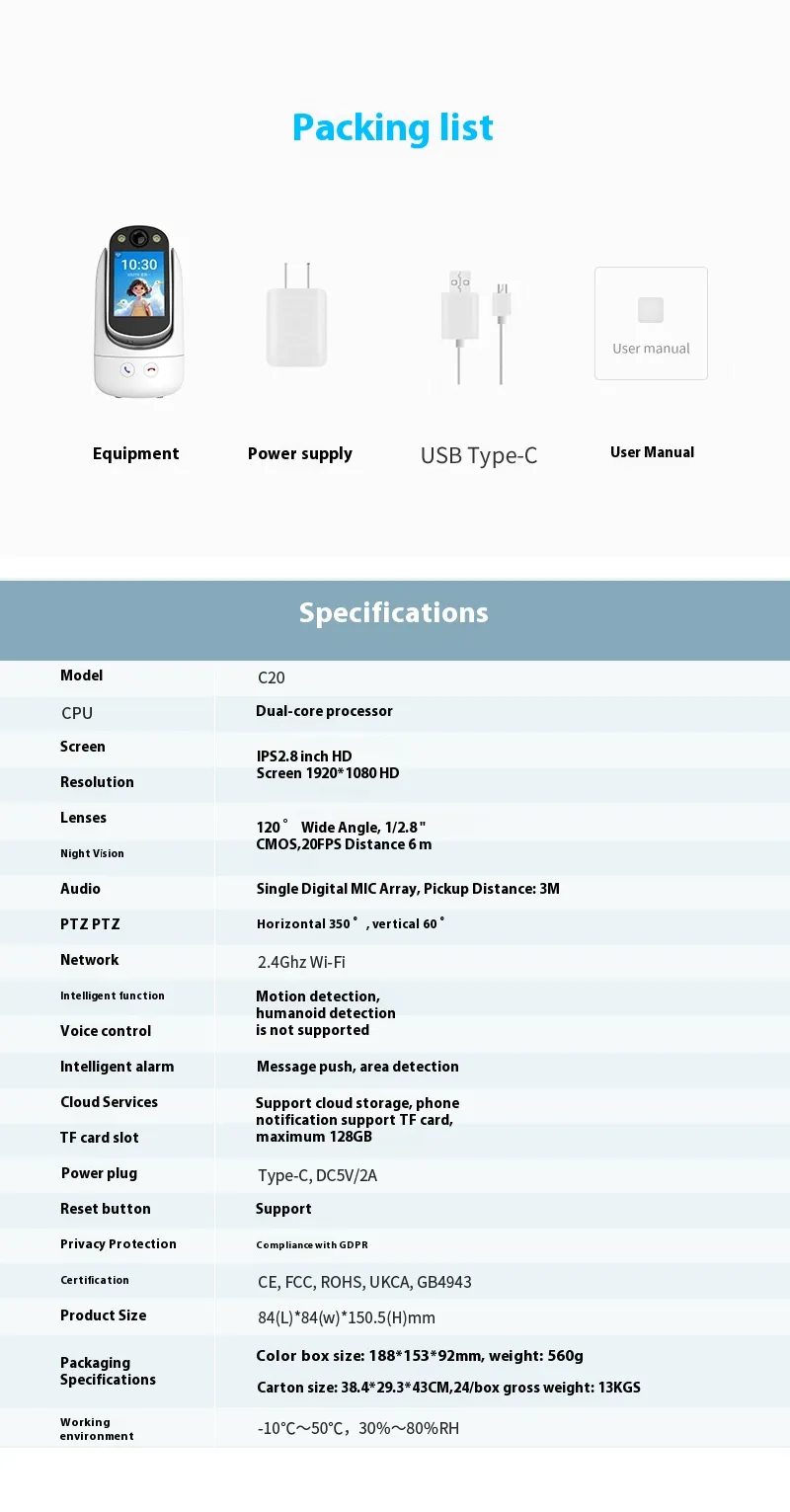 The C20 Two-Way Video Call Surveillance Camera Intelligence is an advanced and reliable solution for anyone looking to enhance their home or office security. With its high-definition video, two-way communication, smart motion detection, and easy remote access, it provides a comprehensive, user-friendly security system. Whether you’re looking to secure your home, communicate with visitors, or keep an eye on your property while away, the C20 ensures that you’re always connected, informed, and in control.