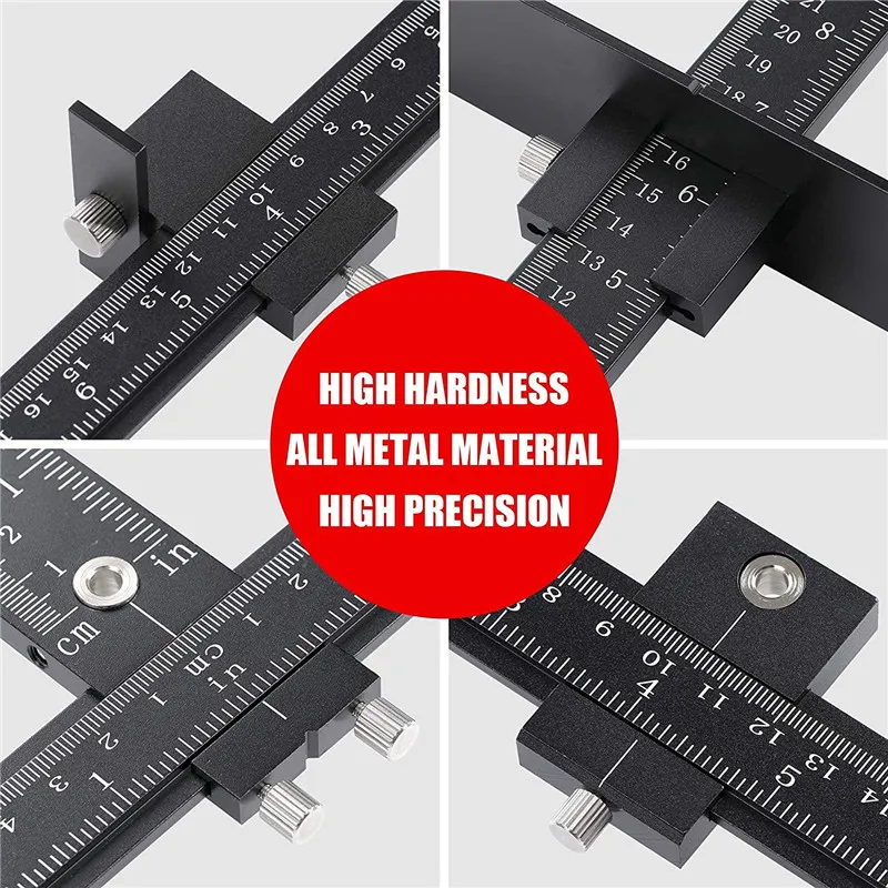 Built-in measurement markings provide clear reference points, helping users align hardware centrally or according to design preference. The jig supports both vertical and horizontal orientations, allowing precise placement on drawers, doors, and panels without repositioning errors.