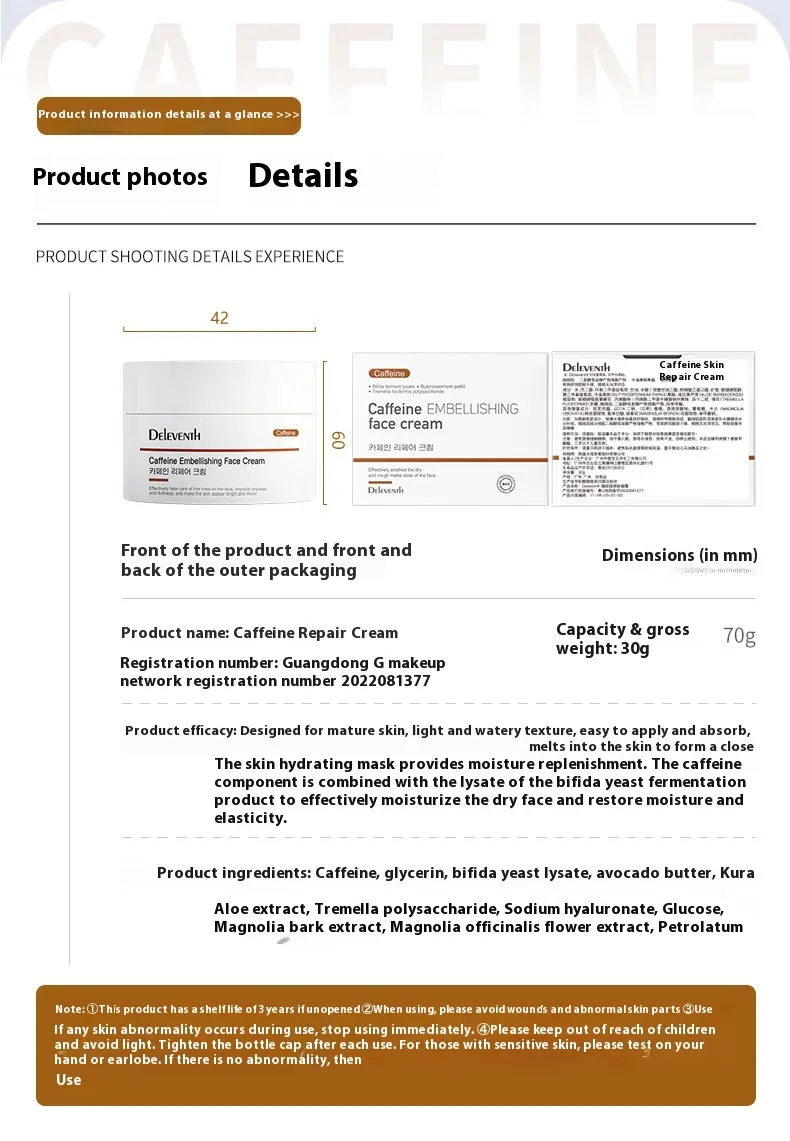 Caffeine Cream Brightening Improve Dark Yellow Anti-oxygen Hydrating Moisturizing Split Yeast Cream