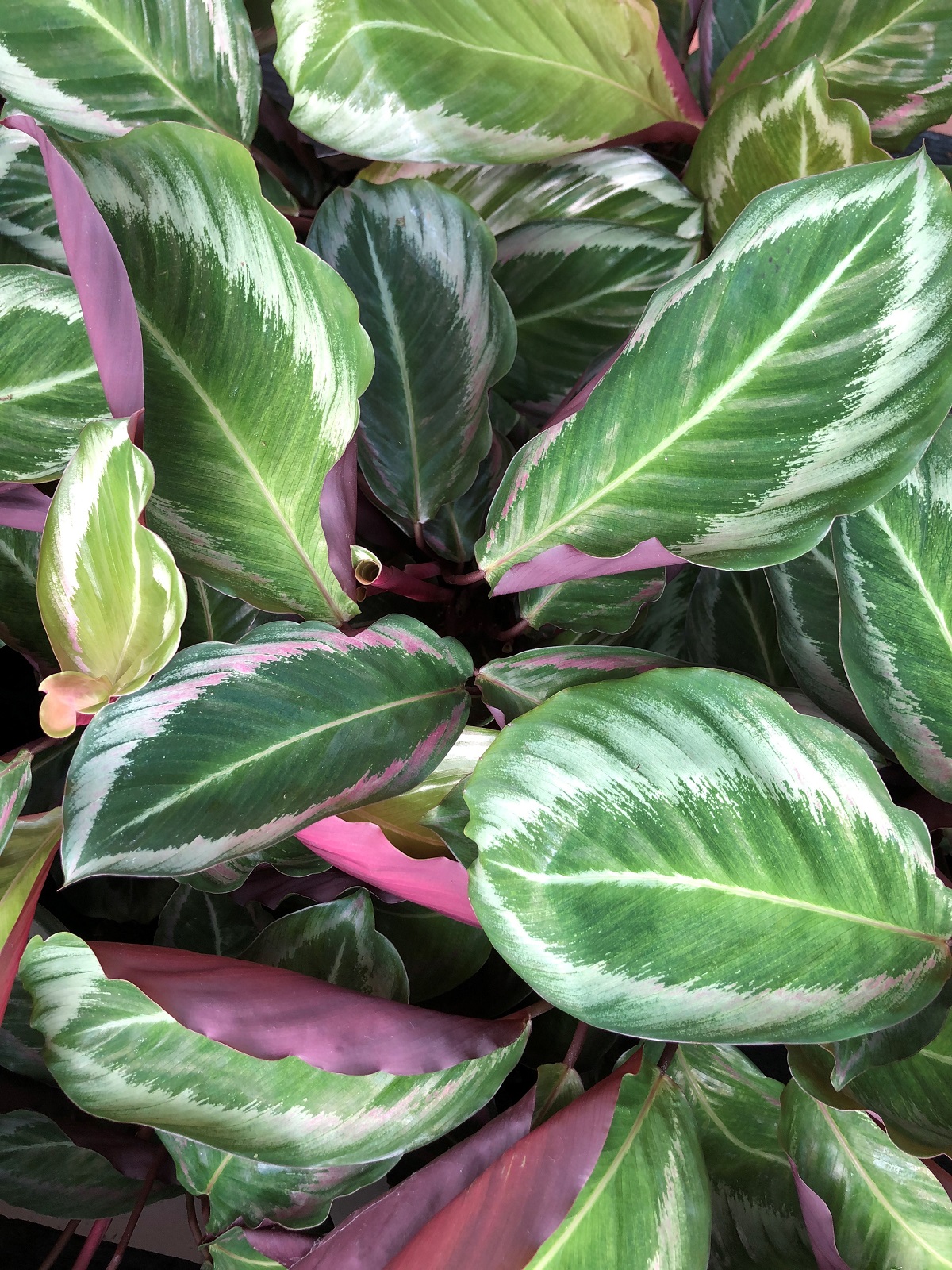 This Calathea variety has a clumping growth habit, with new leaves emerging from the base of the plant. It typically grows to a height of 1-2 feet (30-60 cm) and spreads to about the same width, forming a dense, bushy mound of foliage. Its moderate growth rate and compact size make it an ideal choice for tabletops, shelves, and floor displays in homes, offices, or other indoor environments.