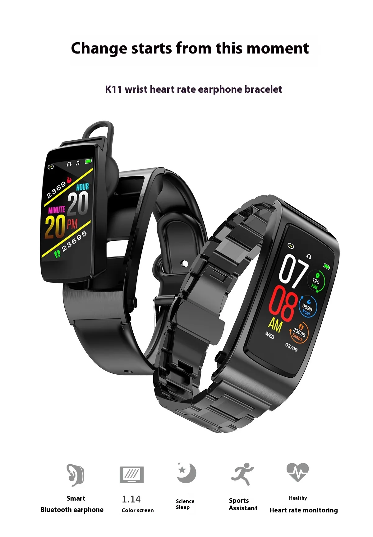 Color: black steel, silver steel, gold steel, black belt, gold strap, black silicone, charging case K11/K12 universal, silver frame black