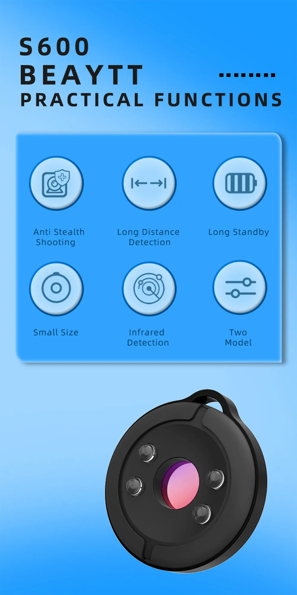 • Nowhere to Hide :Designed with versatility in mind, this detector is capable of detecting cameras in areas where hiding is impossible,