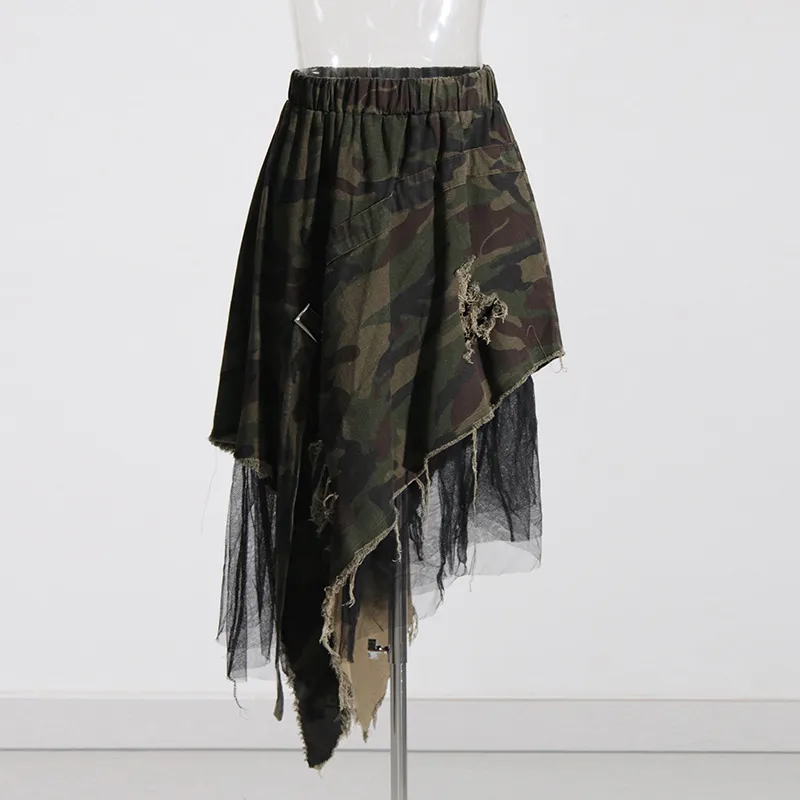 Trendy Camo Print: Featuring a classic camouflage design, this skirt adds a bold, stylish element to your outfit, perfect