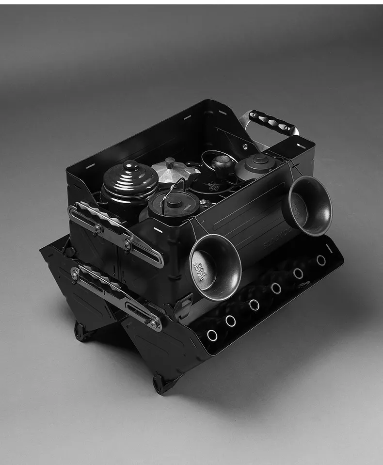 Say goodbye to cluttered camping setups with a storage solution that ensures everything has its place: