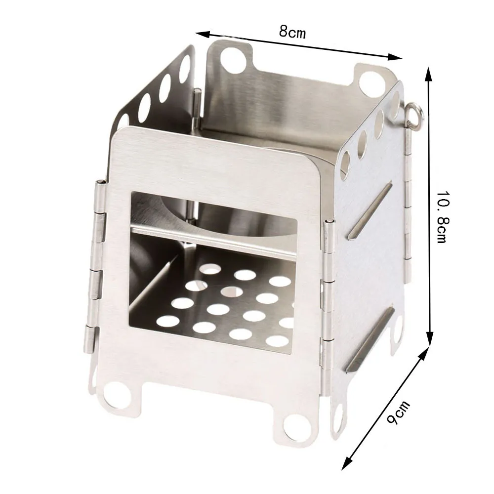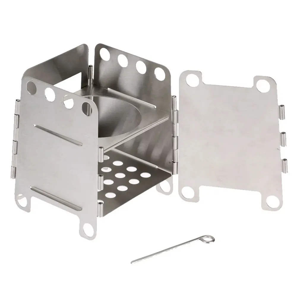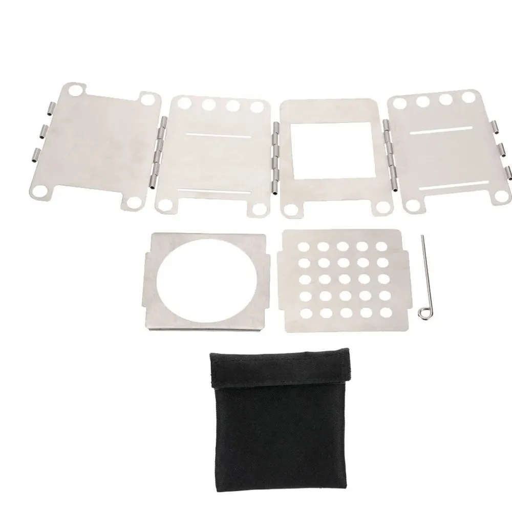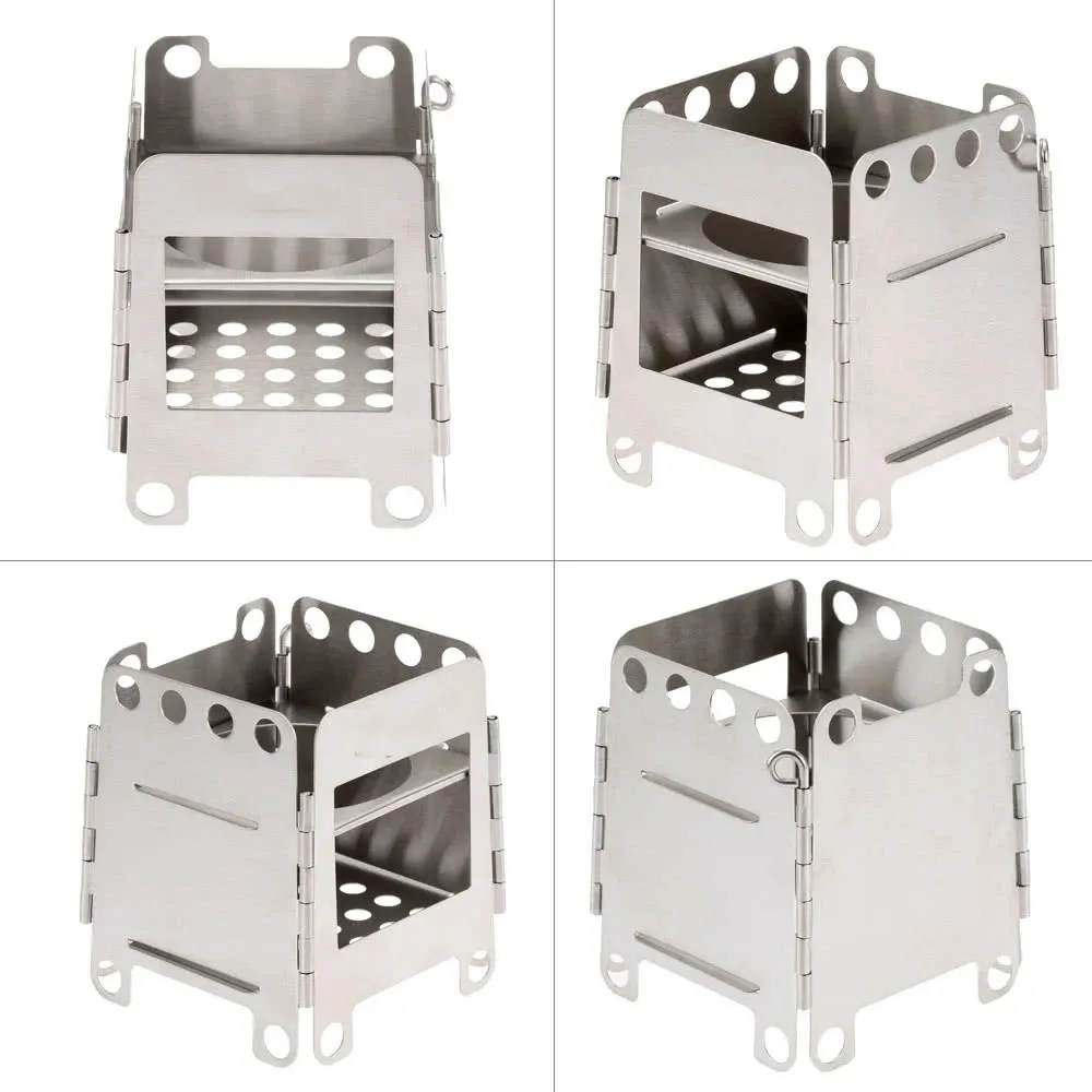 The Camping Stainless Steel Folding Wood Stove combines practicality with portability, offering a range of features designed for efficient outdoor cooking: