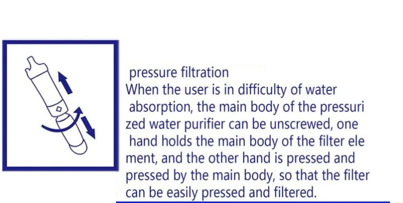 Product features: The water purification straw adds a pressurization function, and can accelerate the filtration through the pressurization