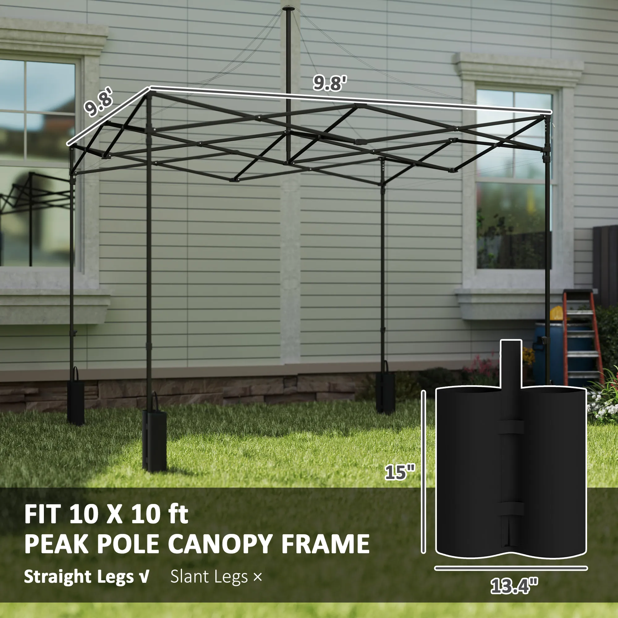 Description:Transform your outdoor space with the Outsunny 10 x 10 canopy replacement cover, a versatile fit for most 10x10 peak pole canopies with straight legs. This gazebo cover offers UPF50+ protection, shielding you from harmful UV rays while easy-to-use hook and loop fasteners ensure a snug fit. Plus, grommet holes prevent water pooling, keeping your canopy tent replacement top lightweight and effective. Features: - Fits most 10x10 peak pole canopies for easy replacement - Includes four weight bags, enhancing stability in windy conditions - UPF50+ protection shields from harmful UV rays - Hook and loop fasteners ensure simple, secure attachment - Grommet holes facilitate water drainage Specification: - Color: American Flag - Material: Oxford Cloth - Overall Dimensions: 118.1" L x 118.1" W - Sand Bag Size: 15" L x 13.4" W - Snow Capacity: 1.02 psf - Item Label: 84C-613V00MX Package Includes: - 1 x Replacement Canopy Top - 4 x Weight Bag Transform your outdoor space with the Outsunny 10 x 10 canopy replacement cover, a versatile fit for most 10x10 peak pole canopies with straight legs. Features: - Fits most 10x10 peak pole canopies for easy replacement - Includes four weight bags, enhancing stability in windy conditions - UPF50+ protection shields from harmful UV rays - Hook and loop fasteners ensure simple, secure attachment - Grommet holes facilitate water drainage Specification: - Color: Dark Gray - Material: Oxford Cloth - Overall Dimensions: 118.1" L x 118.1" W - Sand Bag Size: 15" L x 13.4" W - Snow Capacity: 1.02 psf - Item Label: 84C-613V00CG Package Includes: - 1 x Replacement Canopy Top - 4 x Weight Bag Transform your outdoor space with the Outsunny 10 x 10 canopy replacement cover, a versatile fit for most 10x10 peak pole canopies with straight legs. Features: - Fits most 10x10 peak pole canopies for easy replacement - Includes four weight bags, enhancing stability in windy conditions - UPF50+ protection shields from harmful UV rays - Hook and loop fasteners ensure simple, secure attachment - Grommet holes facilitate water drainage Specification: - Color: White - Material: Oxford Cloth - Overall Dimensions: 118.1" L x 118.1" W - Sand Bag Size: 15" L x 13.4" W - Snow Capacity: 1.02 psf - Item Label: 84C-613V00WT Package Includes: - 1 x Replacement Canopy Top - 4 x Weight Bag Transform your outdoor space with the Outsunny 10 x 10 canopy replacement cover, a versatile fit for most 10x10 peak pole canopies with straight legs. Features: - Fits most 10x10 peak pole canopies for easy replacement - Includes four weight bags, enhancing stability in windy conditions - UPF50+ protection shields from harmful UV rays - Hook and loop fasteners ensure simple, secure attachment - Grommet holes facilitate water drainage Specification: - Color: Navy Blue - Material: Oxford Cloth - Overall Dimensions: 118.1" L x 118.1" W - Sand Bag Size: 15" L x 13.4" W - Snow Capacity: 1.02 psf - Item Label: 84C-613V00DB Package Includes: - 1 x Replacement Canopy Top - 4 x Weight Bag.