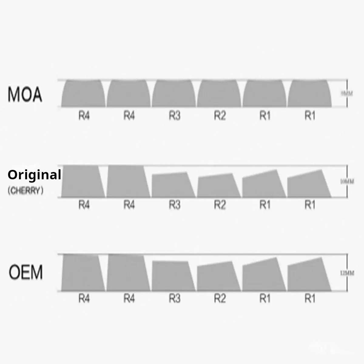 MOA profile: uniform height across all rows (often around ~9.8mm), giving a smooth and consistent key-surface feel. amazon.com+1