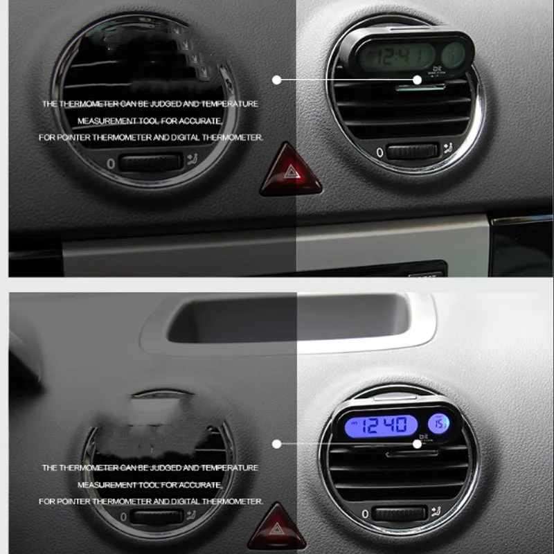 Enhance your driving experience with the Car Clock Thermometer Two-in-one Luminous Electronic Watch Car. This innovative device combines two essential functions—accurate timekeeping and temperature monitoring—into one sleek, easy-to-use gadget. Designed to fit seamlessly into your car's interior, this two-in-one electronic watch and thermometer helps you stay informed about both the time and the temperature, making it a must-have accessory for every driver. Its luminous display ensures that you can read both the time and temperature clearly, even in low light conditions, offering convenience and functionality for your daily commute or long road trips.