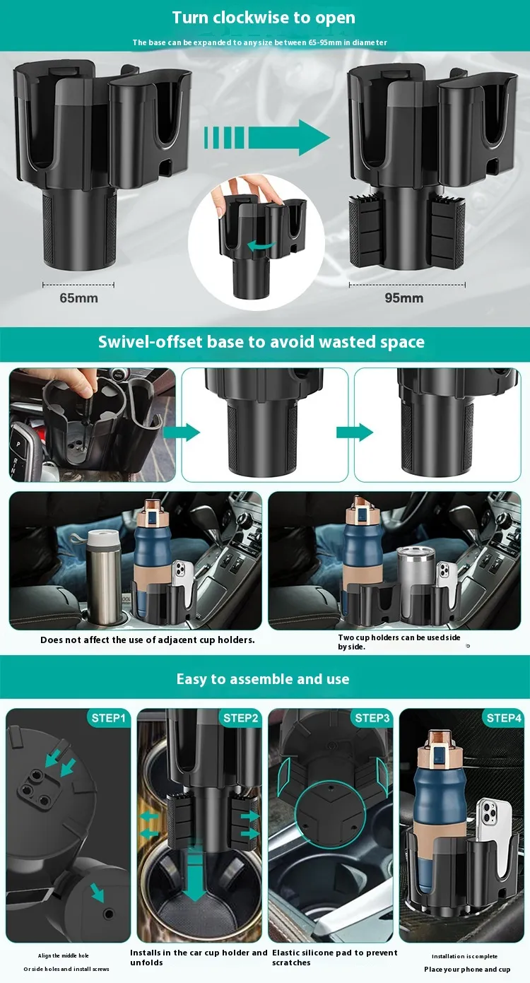 Multi-Functional Design: Not only does it expand the cup holder, but it also provides additional storage space for other