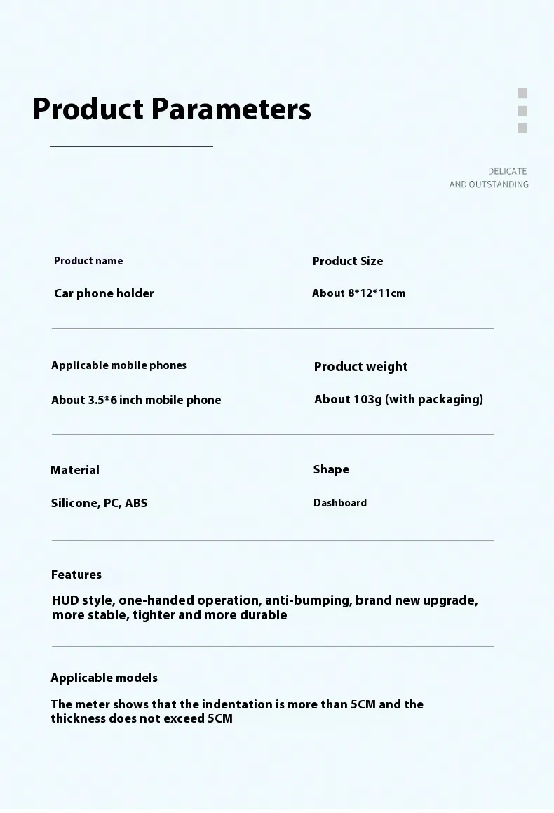 Designed to sit securely on the dashboard, the holder uses a non-slip, vibration-resistant base that maintains stability even on uneven roads, sharp turns, or sudden stops. The mounting system is engineered to grip the dashboard surface firmly without leaving residue or causing damage, ensuring compatibility with a wide range of vehicle interiors.