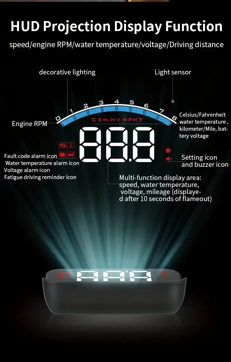 Car Dashboard Display with OBD2 HUD