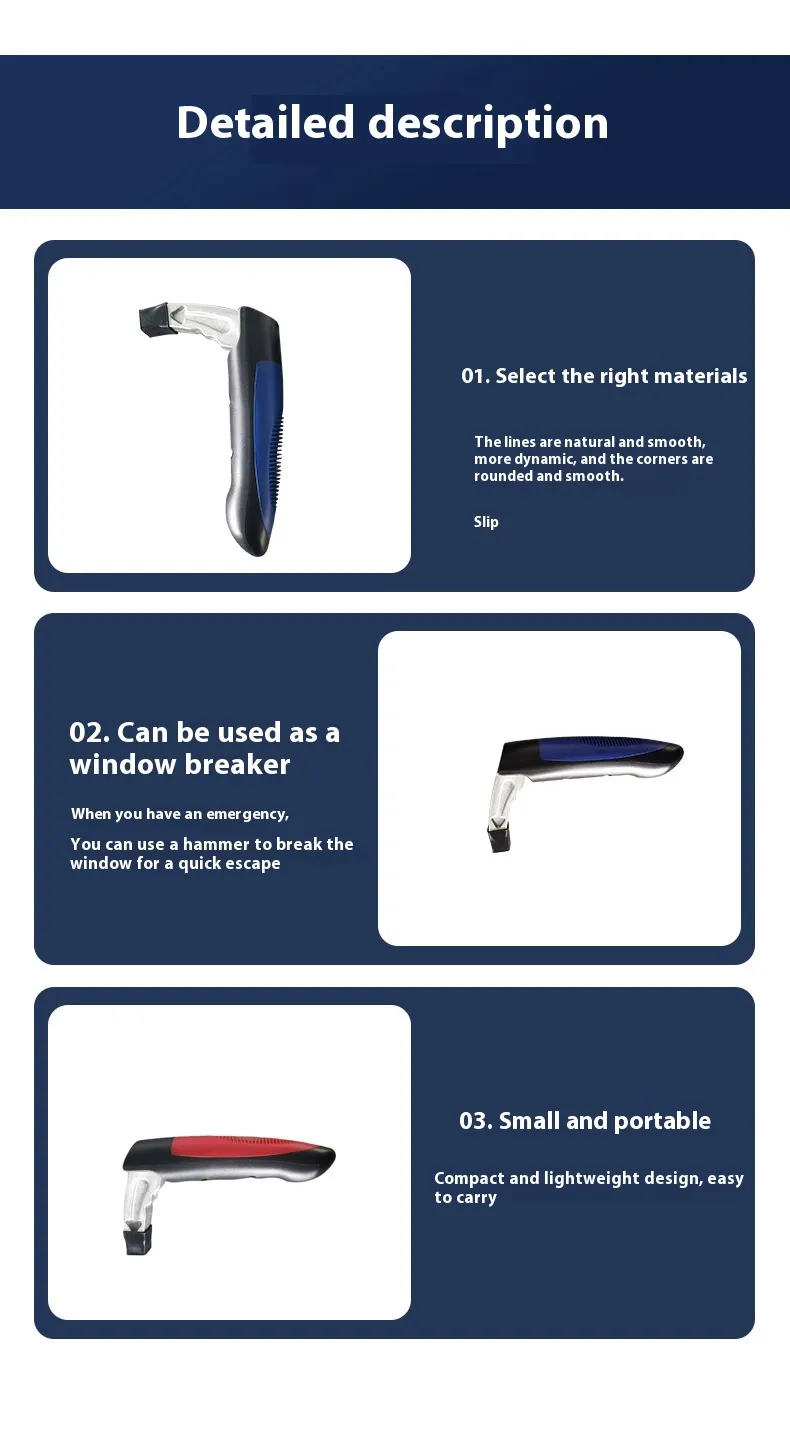 - Emergency Features - Includes seatbelt cutter and window breaker
