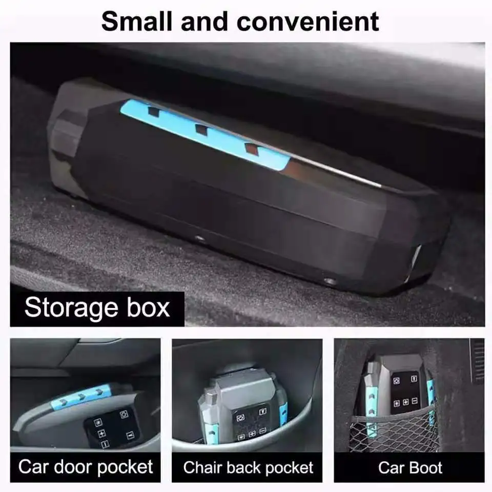 Car emergency air pump with automatic charging, tire inflation, and built-in light for nighttime use. Compact, portable, and efficient for