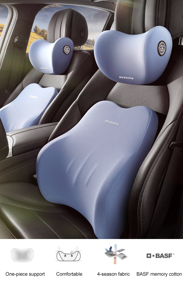 1*Car headrest lumbar support suit(Headrest + Lumbar support)