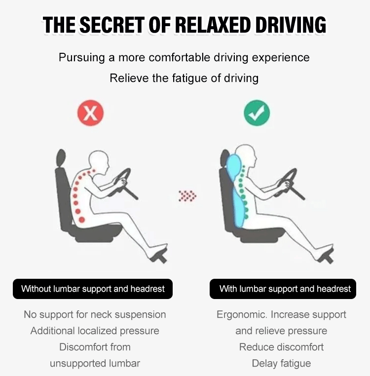 - 【Comfortable Lumbar Support Pillow】The car headrest and back cushion are made of high-quality memory foam, which combines softness and support. The hugging waist support features a sloping design that gently supports and wraps the waist, perfectly filling the gap between the lower back and the seat. The driver's lumbar support pillow provides relaxation for those who are tired from driving.