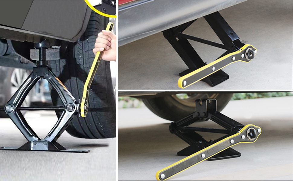 - 【Emergency Use】 Car labor-saving wrench With the conversion head accessory, this jack ratchet wrench can be matched to a variety of cranes, making operation more effortless. Shear jacks for most small cars.
