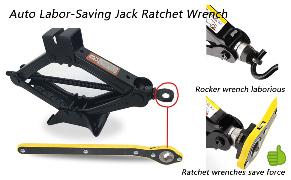- 【Application Range】 CUIDYSDP The 360 ° Swivel Head ratchet wrench jack labor wrench is used to matching with a scissor jack to replace tires in an emergency or on the way to travel. Suitable for motorcycles, household vehicles, SUV off-road vehicles, etc. Not suitable for trucks and trucks.It is one of the necessary tools for going out.